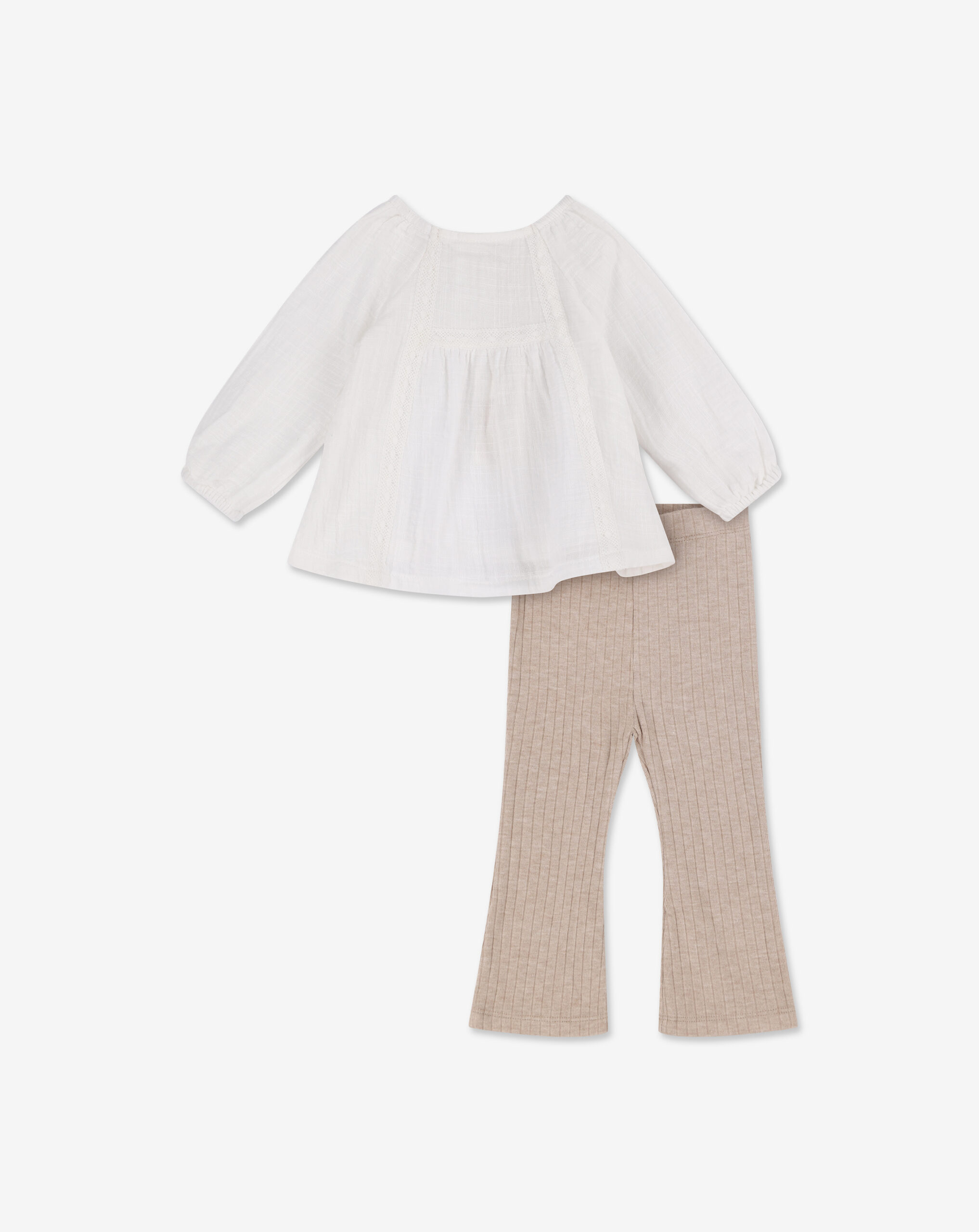 סט טוניקת אריג עם מכנסיים מתרחבים H